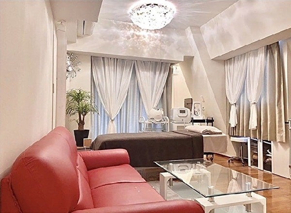 きらびやかな照明と目を引く赤いソファが印象的な完全プライベートサロン。ニキビや肌のざらつきにアプローチするハーブピーリングや、毛穴の奥の汚れをオフしてくれるハイドラフェイシャルなど、熟練の手技とマシンでさまざまな肌悩みを解消へと導く。経験豊富なセラピストに身をまかせて、心ゆくまで理想の美を追求して。
